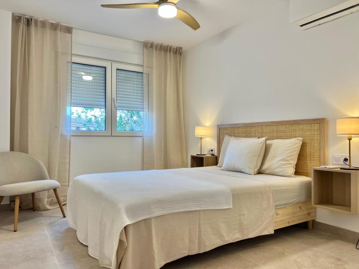 Two-Bedroom Apartment with Terrace. This spacious apartment comes with 1 living room, 2 separate bedrooms and 1 bathroom with a walk-in shower and a hairdryer. The well-fitted kitchen has a stovetop, a refrigerator, a dishwasher and kitchenware. This air-conditioned apartment features a dining area, a flat-screen TV with streaming services a washing machine and a terrace. The unit has 3 beds.